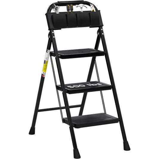 3-Stufen-Leiter EFFIELER Klappbarer Tritthocker mit breitem Anti-Rutsch-Pedal, 500 lbs stabile Stahlleiter, praktischer Handgriff